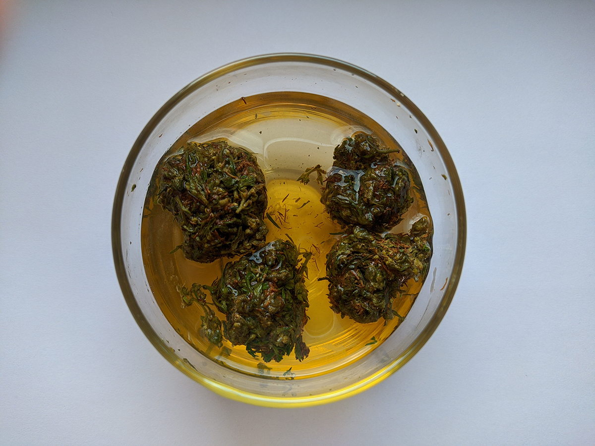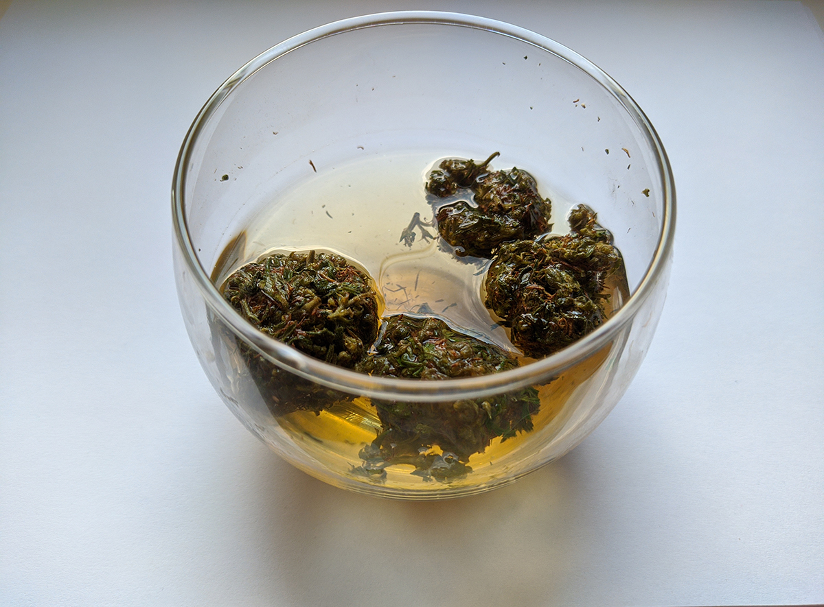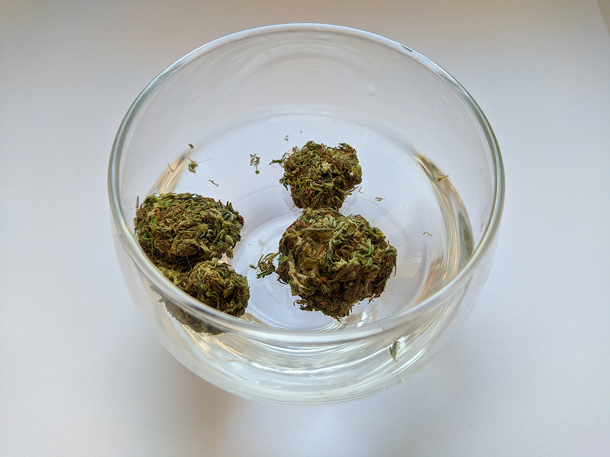 Water Curring ist nichts anderes als die Reinigung von Pflanzenmaterial durch Wasser. WC erhöht die Wirksamkeit und verbessert den Geschmack des Krauts. Nach einer solchen Behandlung haben die Spitzen eine viel dunklere Farbe, sie sind stärker verdichtet. Auch ihr Gewicht nimmt ab, da ein Teil der unnötigen Stoffe an das Wasser abgegeben und weggespült wird. Das Gewicht nimmt um ca. 1/3 ab. Allerdings haben wir mehr Leistung, Geschmack und definitiv besseren Dampf gewonnen. Machen Sie einen kleinen Test mit 1 g Ihres getrockneten Krauts und Sie werden es selbst sehen. Es ist auch eine sehr gute Methode, wenn wir beispielsweise eine schwache Dürre haben und etwas mehr daraus herausholen möchten.