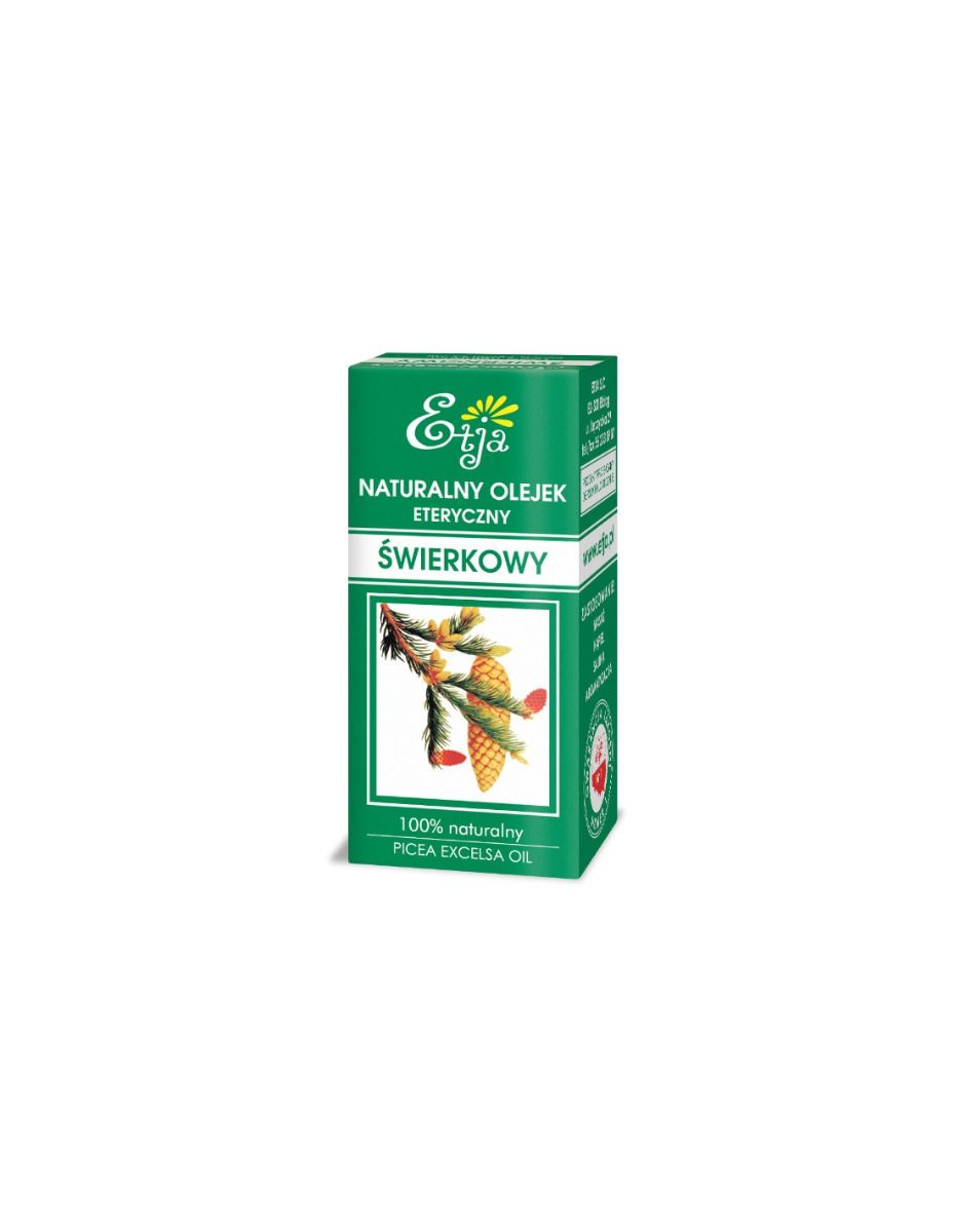 Natürliches Fichtenöl, gewonnen aus jungen Sprossen der Gemeinen Fichte. Es wirkt anregend und erfrischend auf den müden Geist. Es beseitigt die Symptome von Müdigkeit, nervöser Erschöpfung und Neuralgie. Es kann übermäßiges Schwitzen reduzieren und die Durchblutung anregen. Dank seiner wärmenden Eigenschaften kann es Symptome von Rheuma und Arthritis lindern.