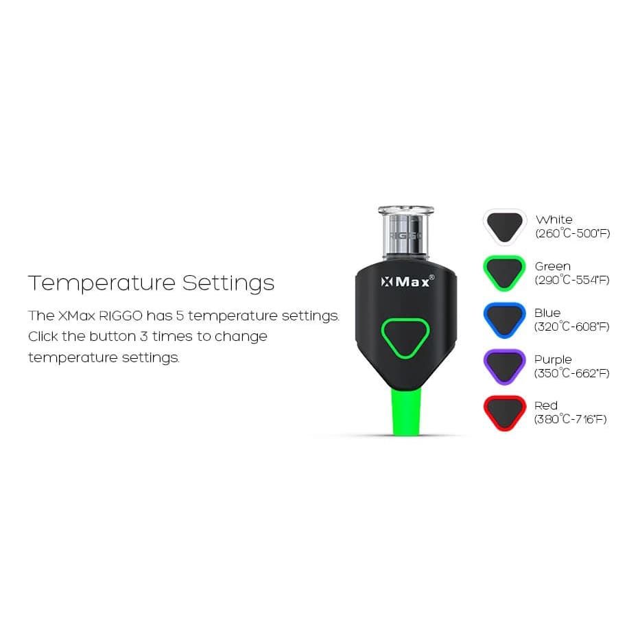Ihr XMax Riggo verfügt über integrierte "Präzise Temperaturregelung" Technologie, die es Ihnen ermöglicht, so intensiv zu verdampfen, wie Sie möchten, während eine konstante Temperatur und Geschmack beibehalten werden.