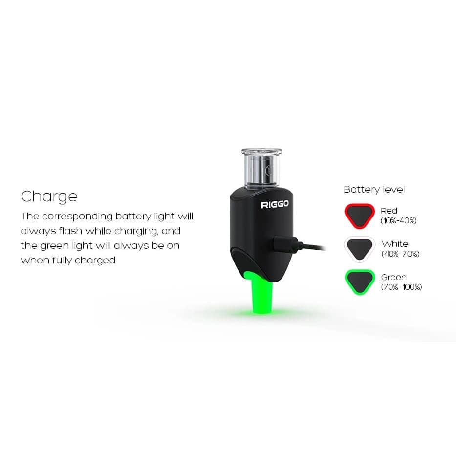Stellen Sie sicher, dass Ihr XMax Riggo vollständig aufgeladen ist, bevor Sie ihn verwenden. Die LED-Anzeige zeigt den Batteriestatus Ihres Geräts an.